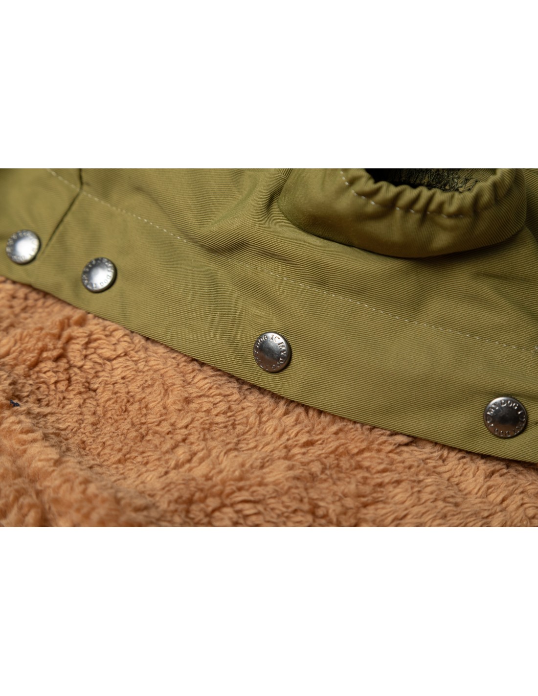 fodera in eco agnello staccabile, chiusura con doppio bottone, coulisse sul fondo per regolare.